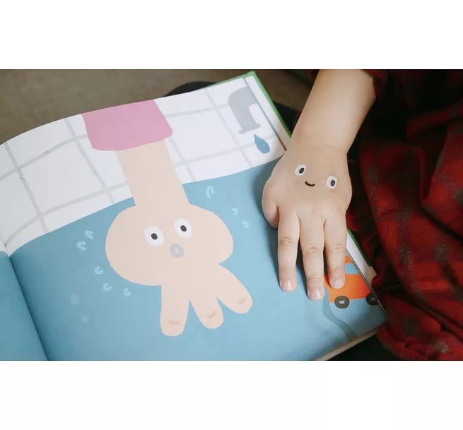 豐富親子互動:透過有韻律的文字並搭配紋身貼紙,和小寶貝一起做出相對應的手指遊戲,變!