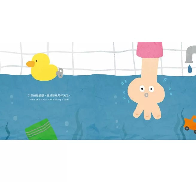 【溫柔系幼兒啟蒙互動繪本】手指頭變變變 (附安全無毒紋身貼紙+中英雙語+Qrcode)