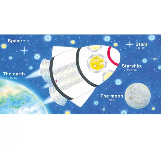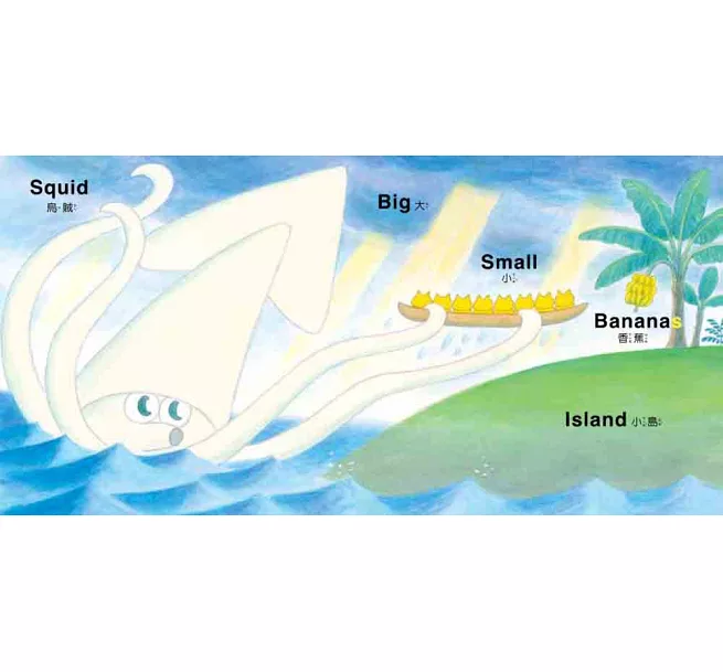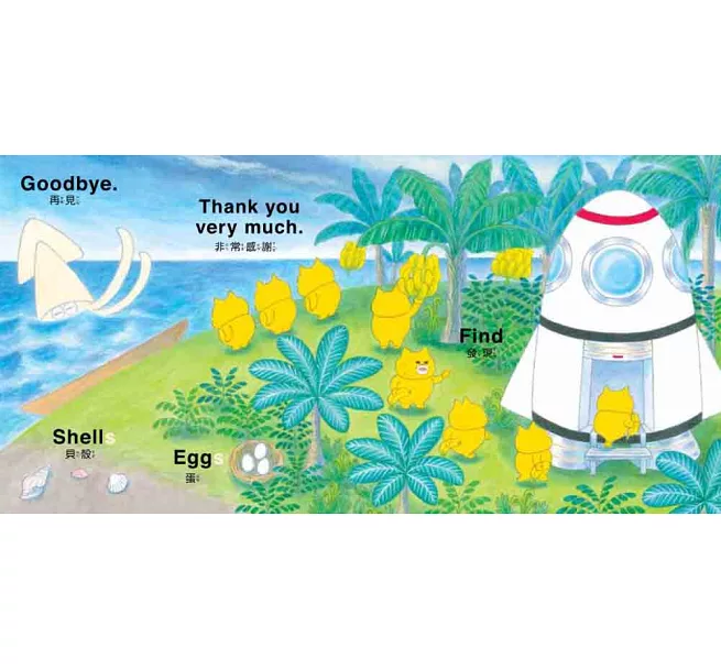 隨著每一頁的可愛情境圖,學習圖中的英文字彙,