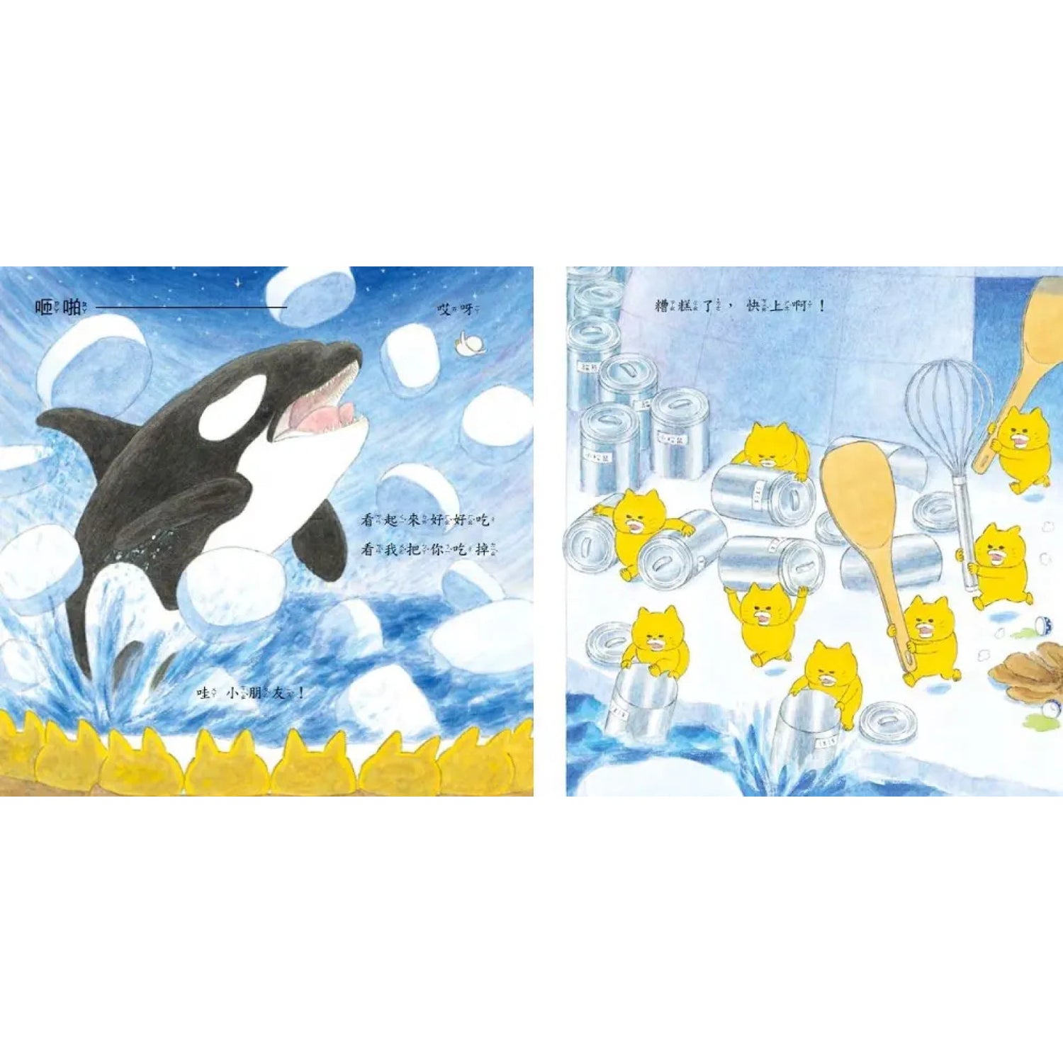 幸好小企鵝翩翩回工廠巡視,適時用溫水、毛毯與熱茶救了他們。當小企鵝去找企鵝爸爸來送野貓們回去時,海裡忽然躍出一頭大虎鯨,直撲小企鵝。野貓們立刻全體動員出手相救,勇敢的與虎鯨抗戰,幫助小企鵝逃跑,卻遭到虎鯨將他們躲藏的冰桶咬破,並放在冰層下,想把他們逼出來……