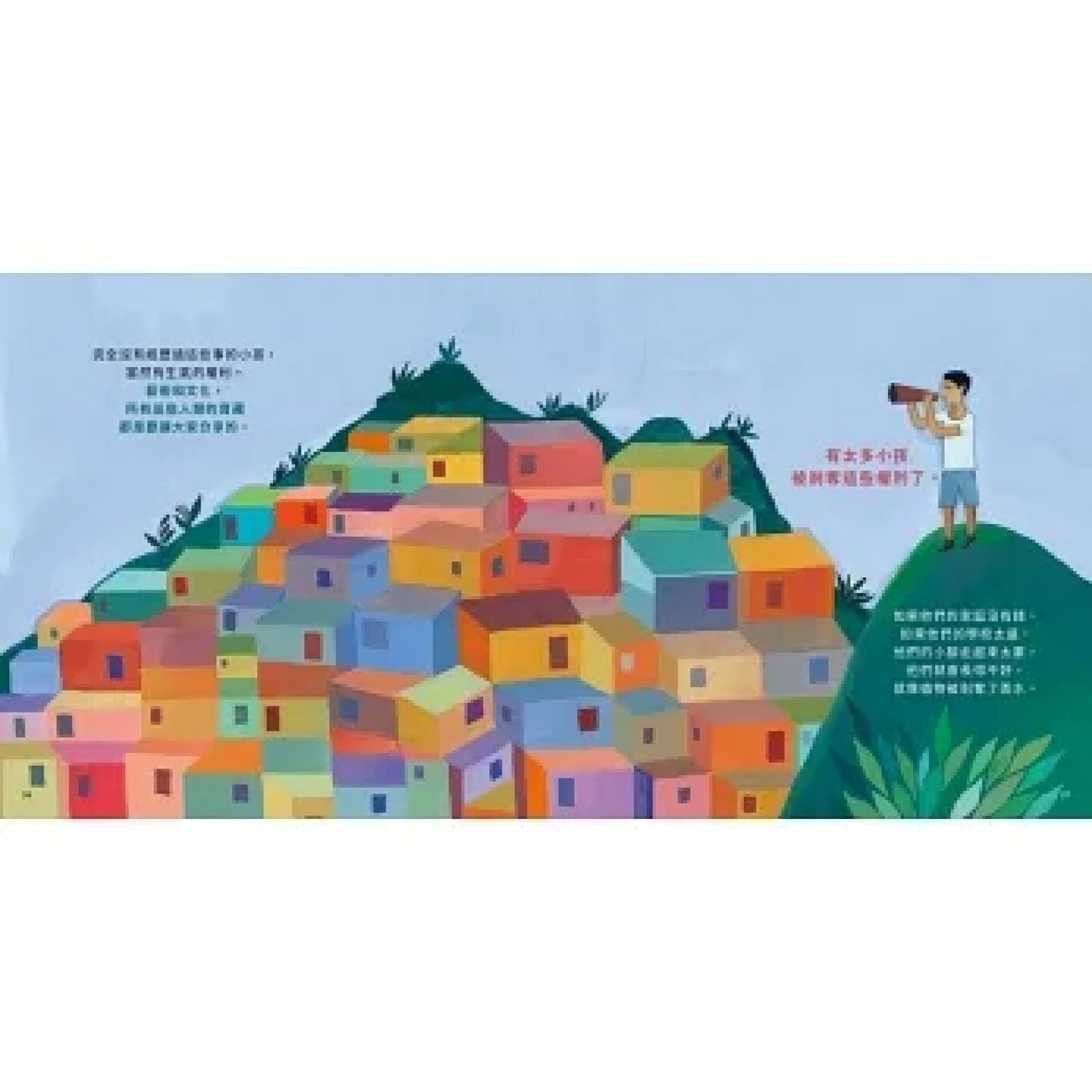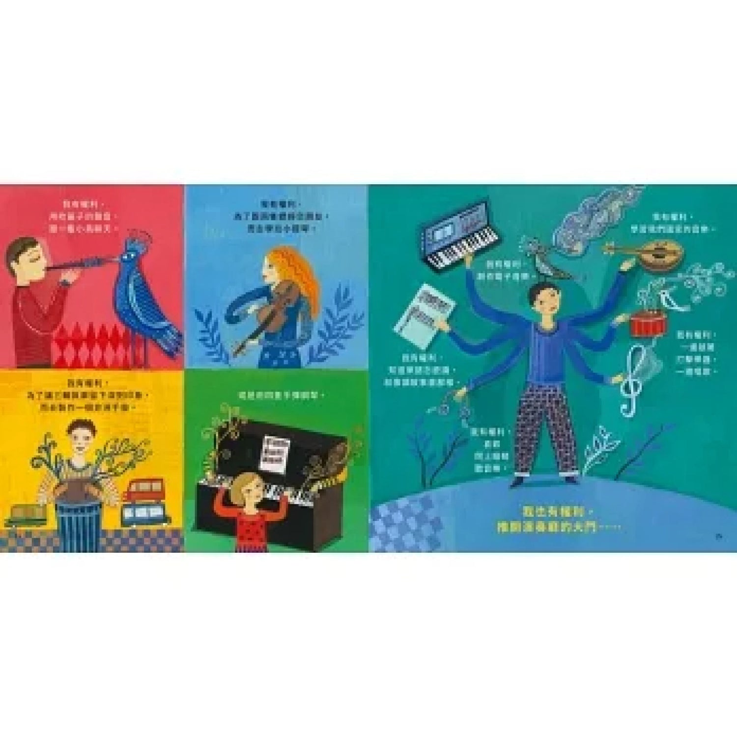 作者透過文字告訴我們,孩子不僅應該擁有受教育的權利和學習藝術、享有文化生活的權利,有權利學習如何透過創作與世界溝通,有權利在快樂的時候自由的跳舞歡唱,更有權利用他的雙眼自己去發現這個世界的美。